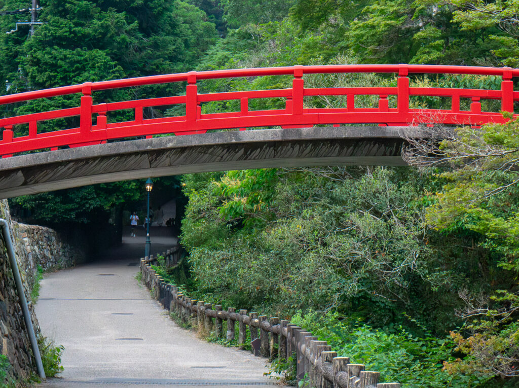 深い緑に囲まれた山道に、真っ赤な橋が一際目を引く風景。自然の中にある人工物の色が映えて、初心者でも構図が決まりやすい撮影スポットです。橋の曲線や木々のバランスを意識して撮ると、奥行きのある一枚に。