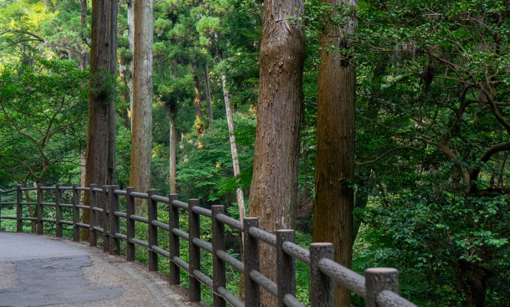 空に向かってまっすぐ伸びる杉の木と、それに沿って続く遊歩道。静かで涼しげな空気が流れていて、歩くだけでも癒されます。縦構図で撮ると木の高さが際立ち、スケール感ある写真に仕上がります。